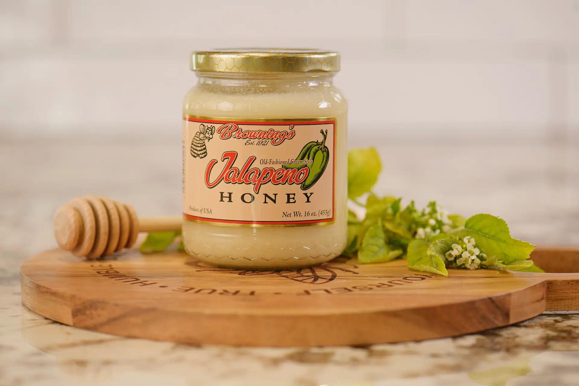 Kick things up a bit with Browning’s Sensational Jalapeno Creamed Honey! Fabulous on grilled corn on the cob, cornbread, or in place of mustards and sauces on ham or baked chicken, the mild yet spicy flavor of the peppers really comes through in a new and marvelous way. Try some and create your own flavor fiesta today…Ole!!